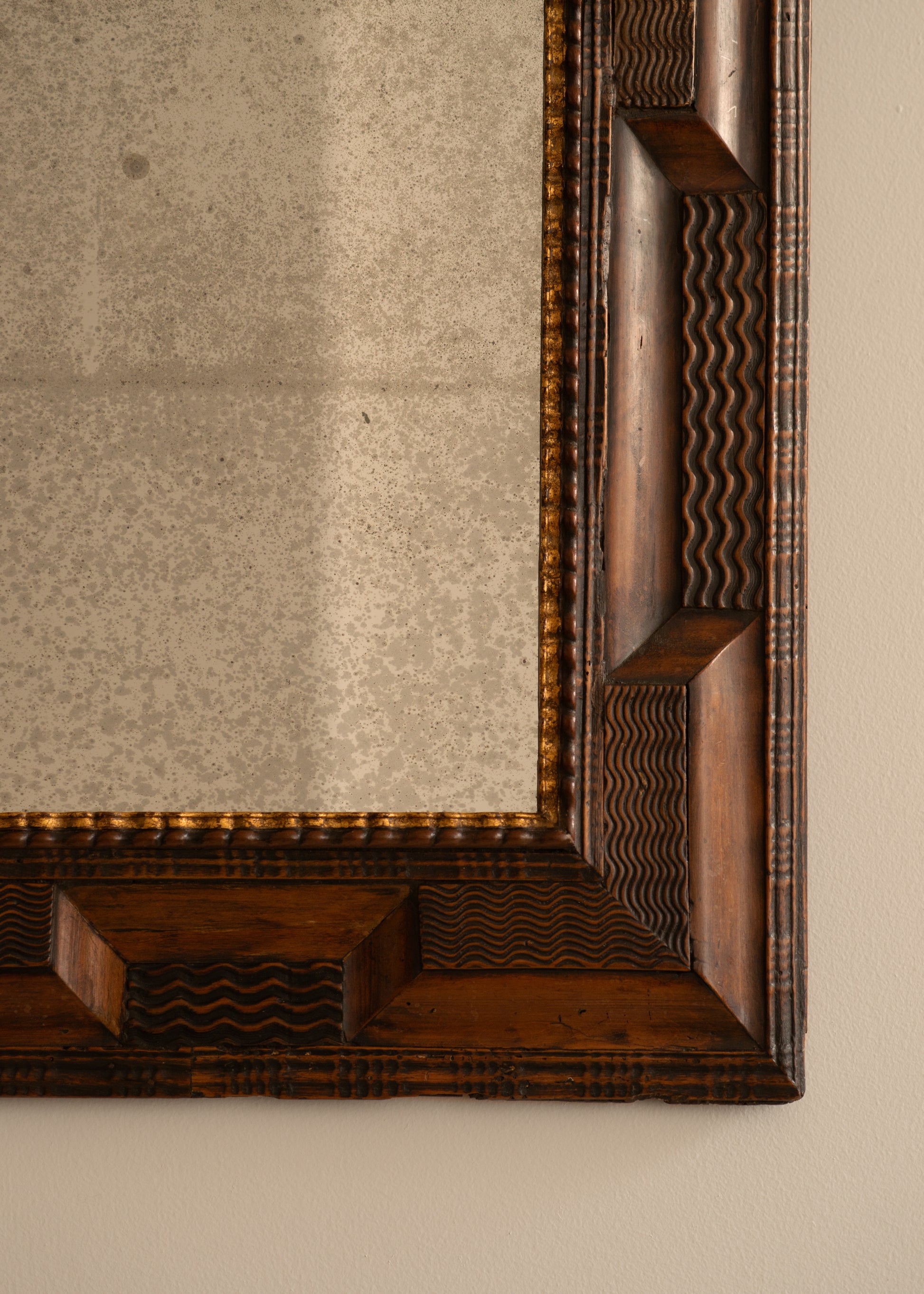 With original mirror plate and gilt wood surrounding the interior.